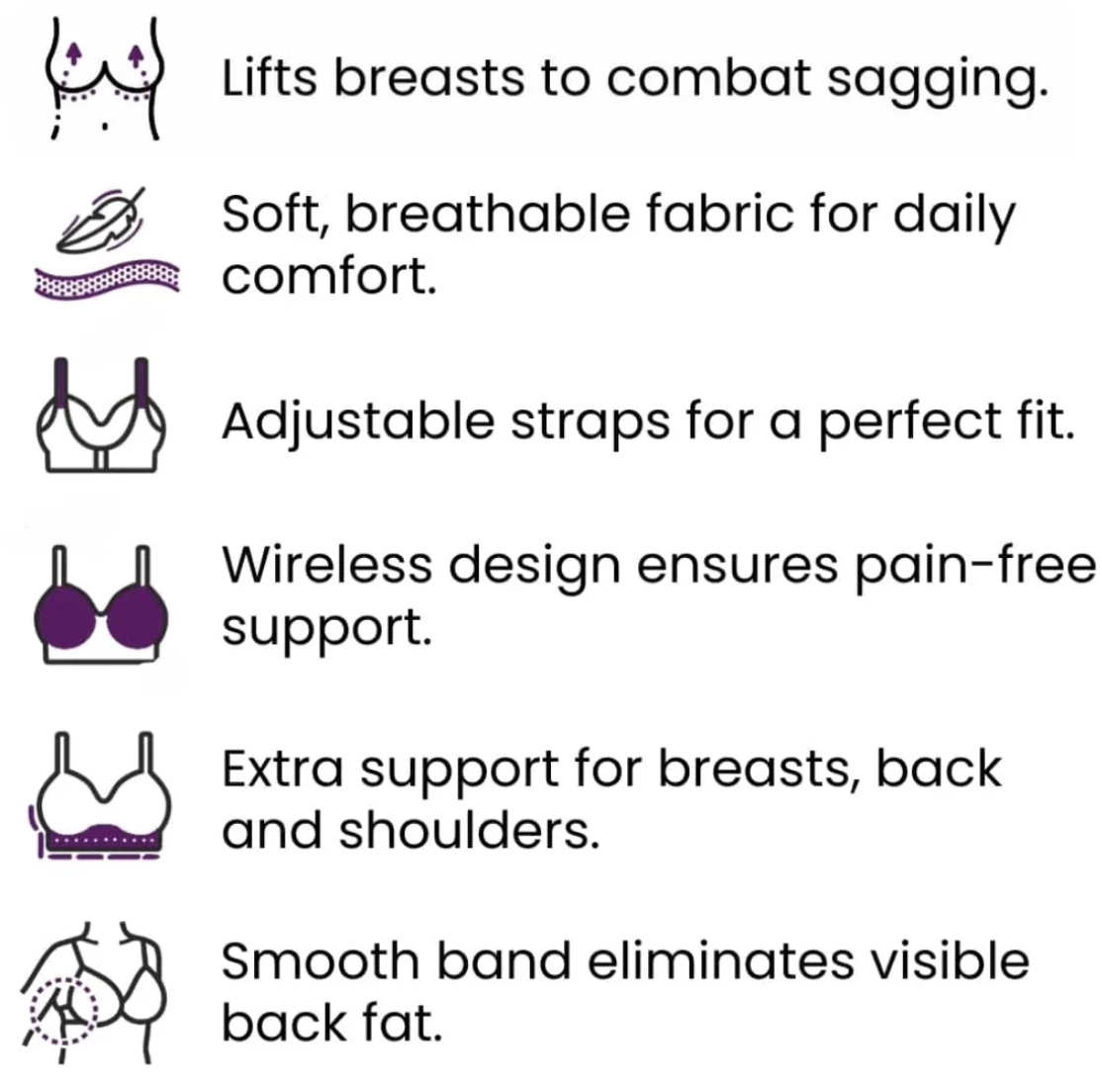 Gently enhances and supports the bust for a smooth, flattering silhouette — no wires, no padding, no discomfort.